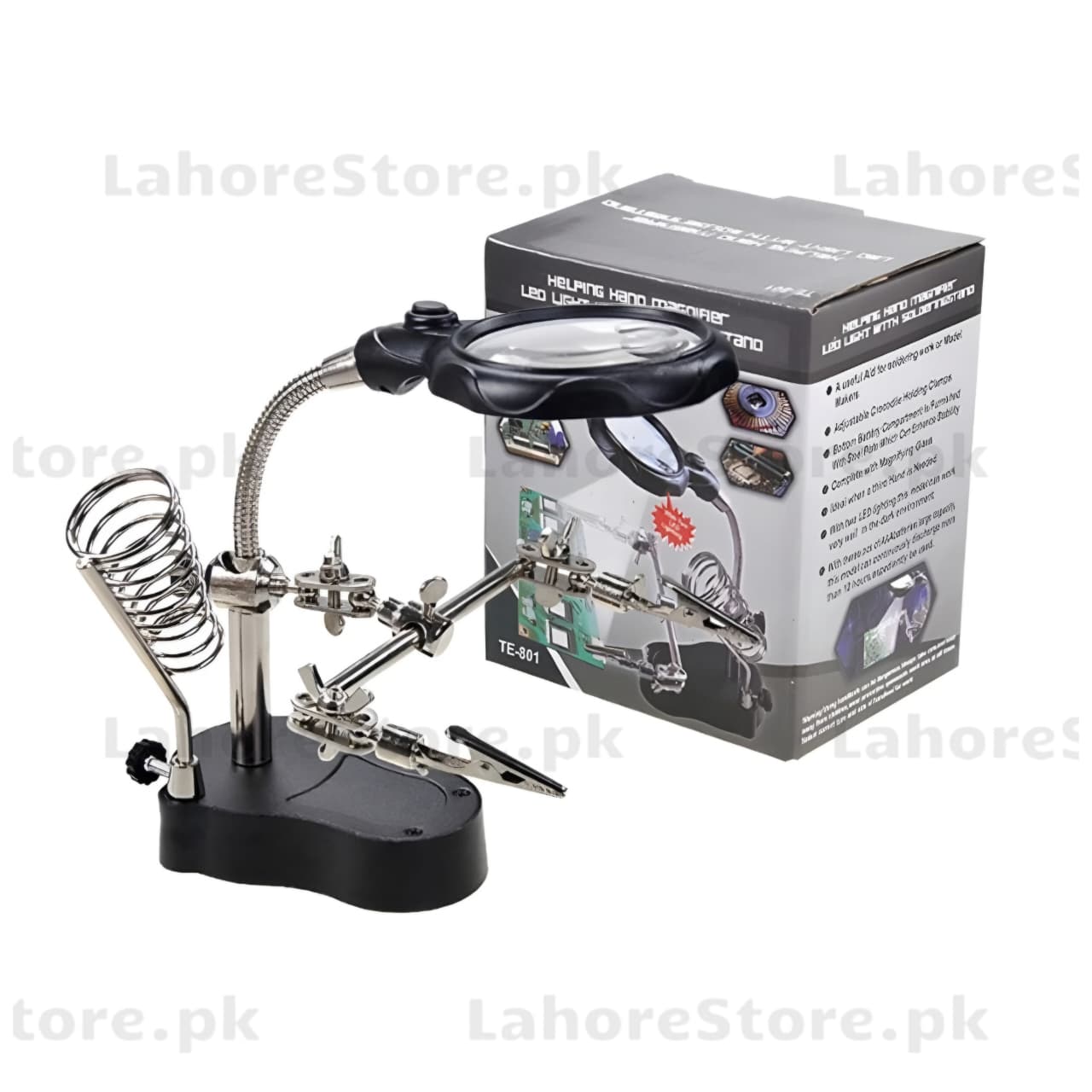 The TE 801 LED Magnifier Handle is a high‑quality handheld magnifying glass designed for clear, bright, and detailed viewing. Equipped with built‑in LEDs, it delivers enhanced visibility for reading, electronics repair, crafting, jewelry inspection, and general use. Its ergonomic handle ensures a comfortable grip, making it ideal for long working sessions.